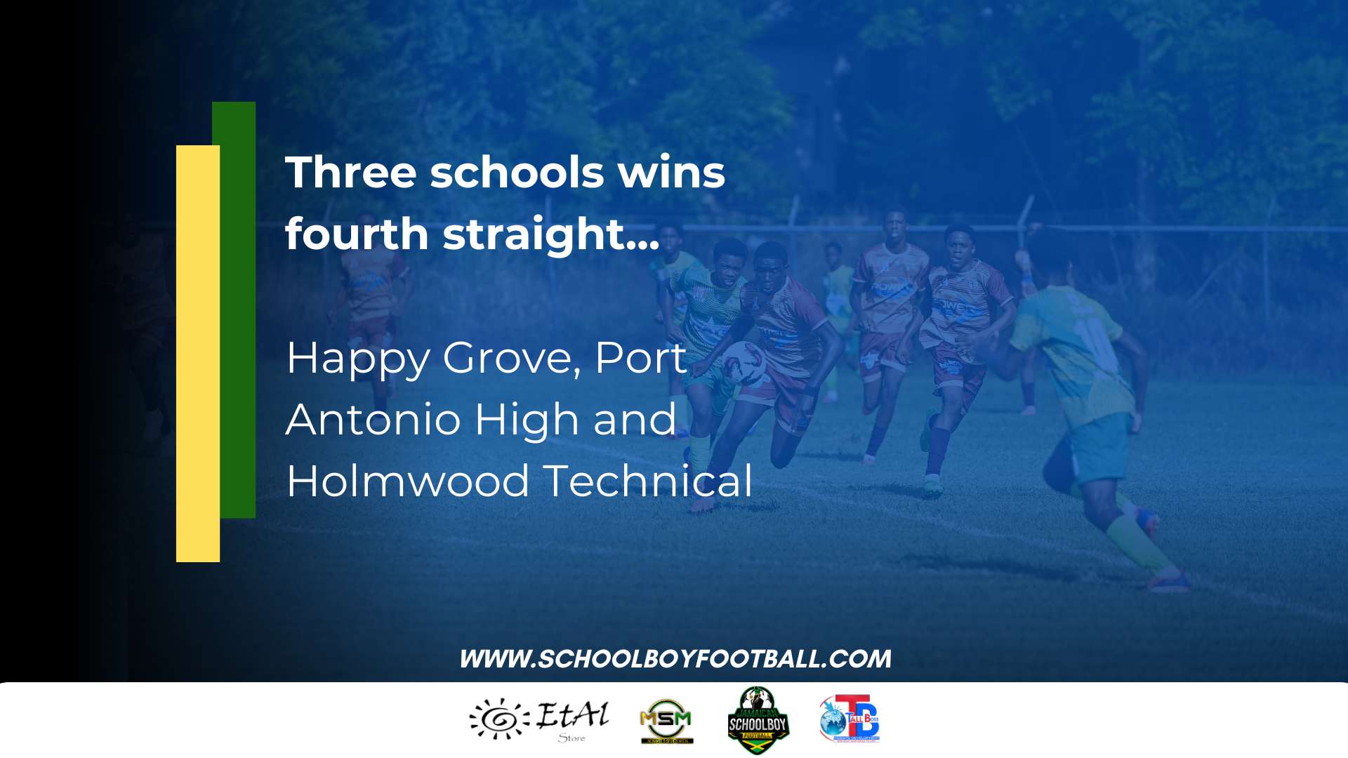 Three more schools have won a fourth straight game in the ISSA/Wata football competition after extending their good starts with victories on Wednesday, September 18, 2024, Happy Grove High, Port Antonio High and Holmwood Technical.